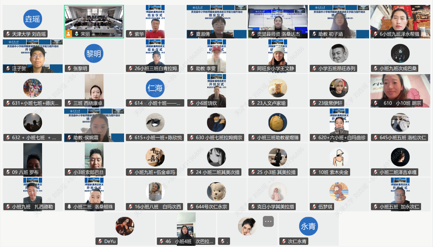 2025年11月29日上午,贡觉县中小学教师国家通用语言文字能力提升在线示范培训结业仪式在成人网 卫津路校区九楼404会议室以及腾讯会议线上同步举行。昌都市教育局党组副书记、副局长张紫华,贡觉县教育局党组书记、副局长吕元香,成人网 教务处副处长夏淑倩,成人网 党委书记吕静,国家语言文字推广基地(成人网 )副主任岳静,以及成人网 、培训教师、参训学员和志愿者代表参加了结业仪式。仪式由成人网 党委副书记、副院长王用源主持。