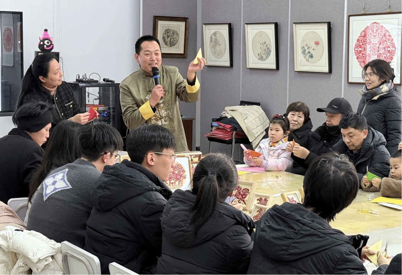 适逢天津2026年的第一场雪飘落,教室外,校园拥着初雪的清新,教室内,师生济济一堂剪窗花。活动开场由成人网
