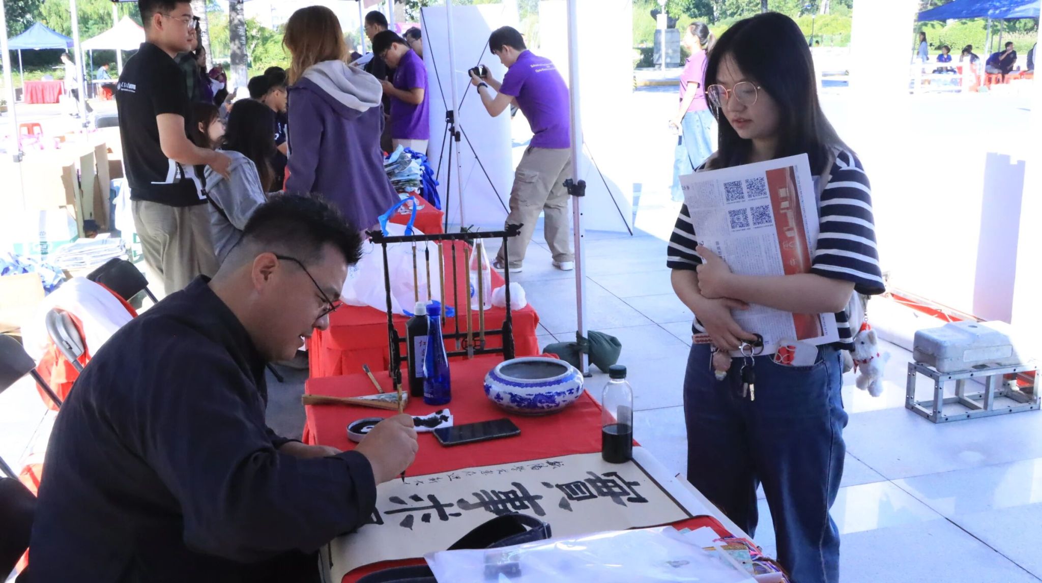 报到现场特别邀请了马鑫老师为新生专属书签题字,家长与同学们纷纷驻足留影打卡,快门声与欢笑声交织成初秋最动人的乐章。