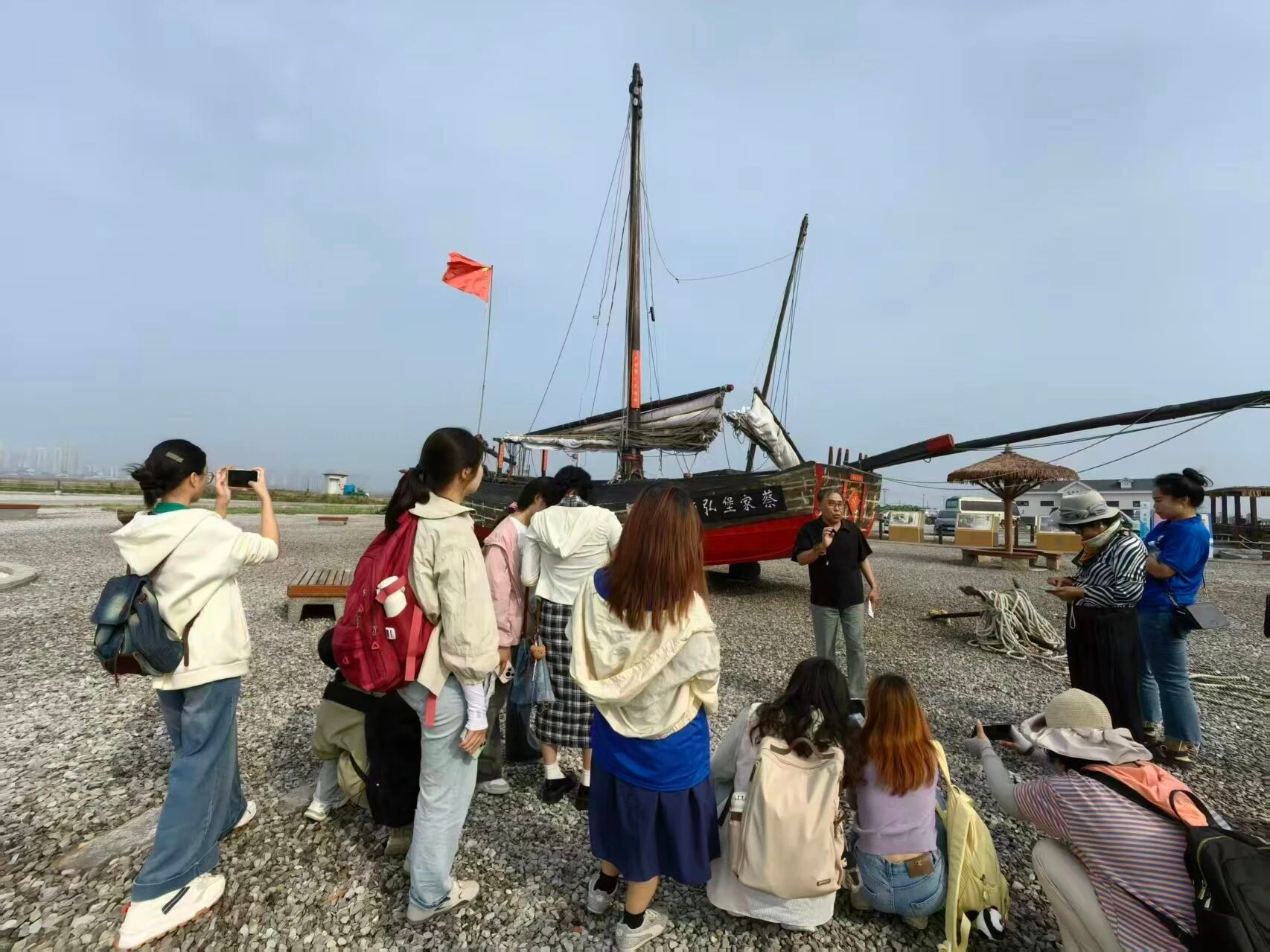 上午,同学们到达天津长芦海盐文化旅游区。曹老师指导大家开启手机广角功能,从不同角度拍摄旅游区的“弘顺号”帆船、七彩盐田,记录千年盐场的壮阔与历史人文之美,感受传统制盐技艺等非遗项目的独特魅力。
